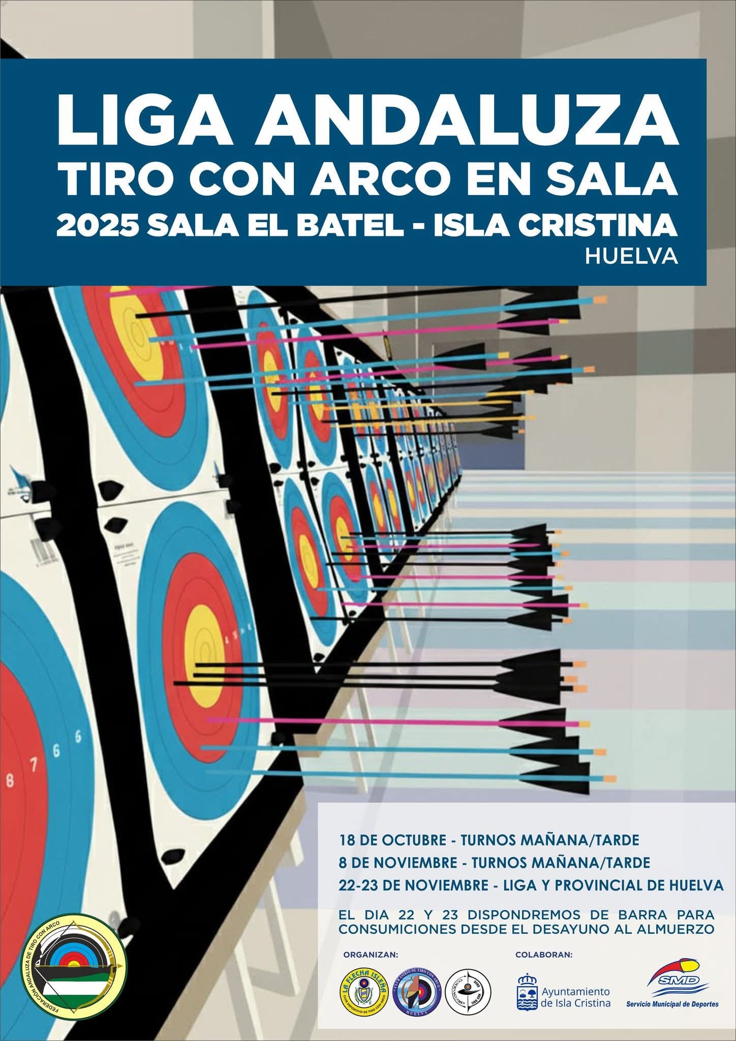 La circular de la Liga Andaluza de Sala de 2025, 3 jornadas en diferentes lugares para modalidades de arco recurvo, compuesto, desnudo, tradicional, long bow y estándard.
